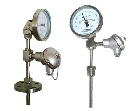 遠(yuǎn)傳雙金屬溫度計(jì)是將熱電阻或熱電偶的信號(hào)遠(yuǎn)傳功能與雙金屬溫度計(jì)就地指示功能相結(jié)合,它既能滿足現(xiàn)場(chǎng)測(cè)溫需求,亦能滿足遠(yuǎn)距離傳輸需求,遠(yuǎn)傳雙金屬溫度計(jì)可以直接測(cè)量各種生產(chǎn)過程中的 -40~+600℃范圍內(nèi)液體、蒸氣和氣體介質(zhì)以及固體表面的溫度測(cè)量。
