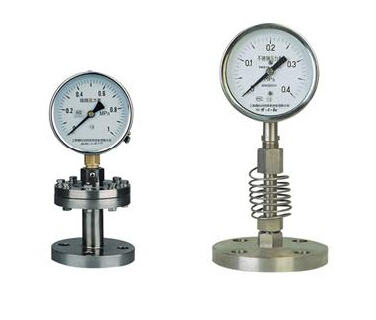隔膜式壓力表是由膜片隔離裝置和配用壓力表兩大部分組成。廣泛應(yīng)用于石油、化工、醫(yī)藥、食品、造紙等行業(yè)測量具有強(qiáng)腐蝕性、高粘度、易結(jié)晶及含有固體顆粒的液體介質(zhì)壓力。