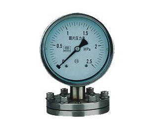 原理:膜片式壓力表是膜片作為儀表的強(qiáng)性元件,當(dāng)被測(cè)介質(zhì)的壓力作用到膜片上,膜片產(chǎn)生一個(gè)位移,再經(jīng)過(guò)機(jī)芯部件,指針部件的工作,使要測(cè)的 壓力清楚地在刻度盤(pán)上指示出來(lái)。
